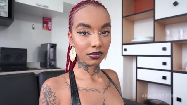 Lara Rouge, beautiful black goth Brazilian model & singer first real porn scene (Anal, first porn, ebony, goth, IR BW/WM, big cock) OB582