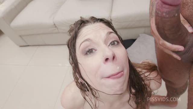 First Piss! 5on1 first time slut Dina Joy gets a portion of piss along with a double vagina from five big cocks