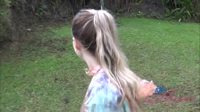 MILF Janet Alfano plays with her pussy on a swing outdoors and squirts